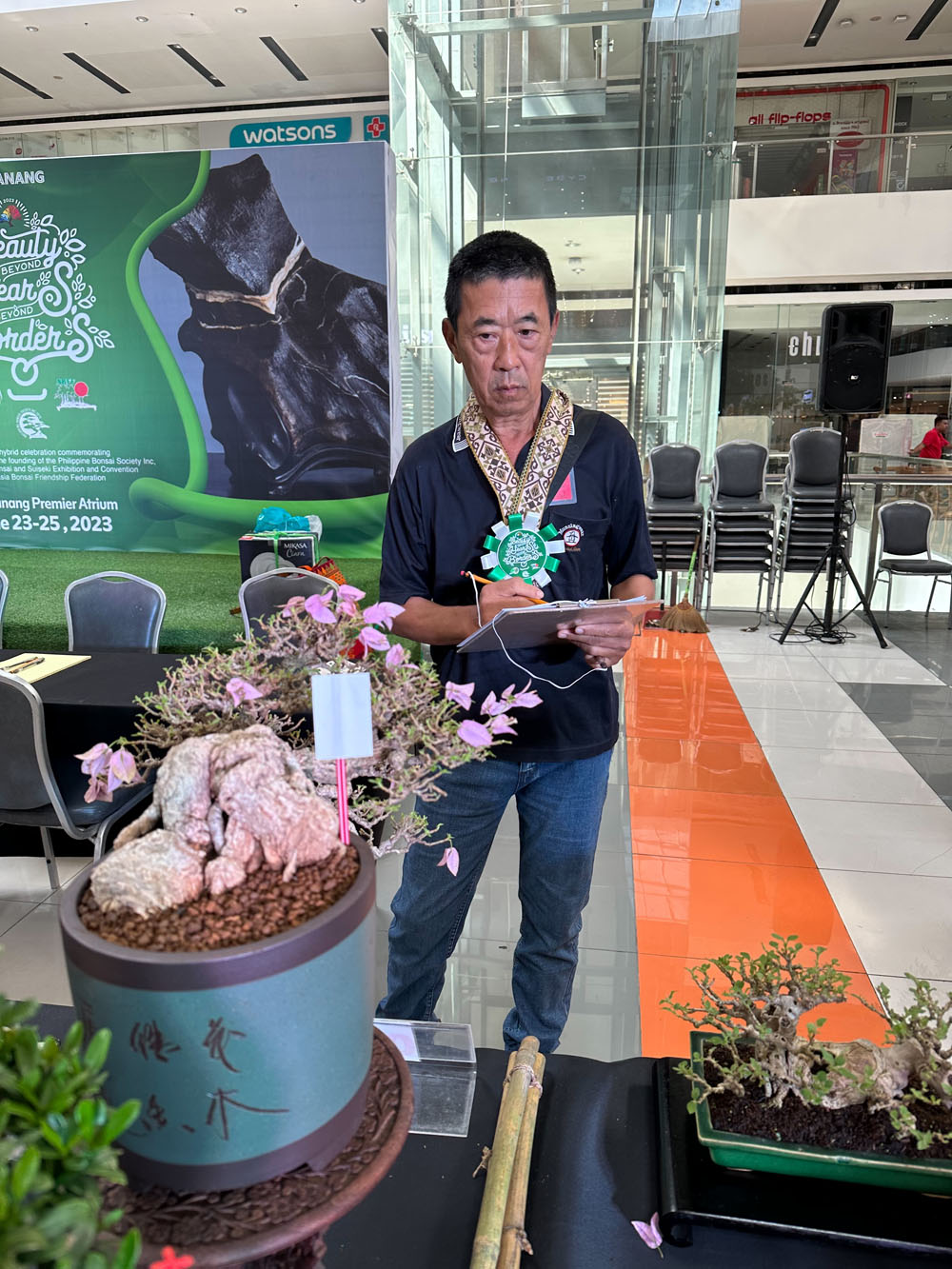 2023年應邀前往菲律賓擔任盆栽展賽評審與表演嘉賓,於現場示範真柏整枝與舍利雕刻技術,獲得當地園藝社群熱烈迴響。
