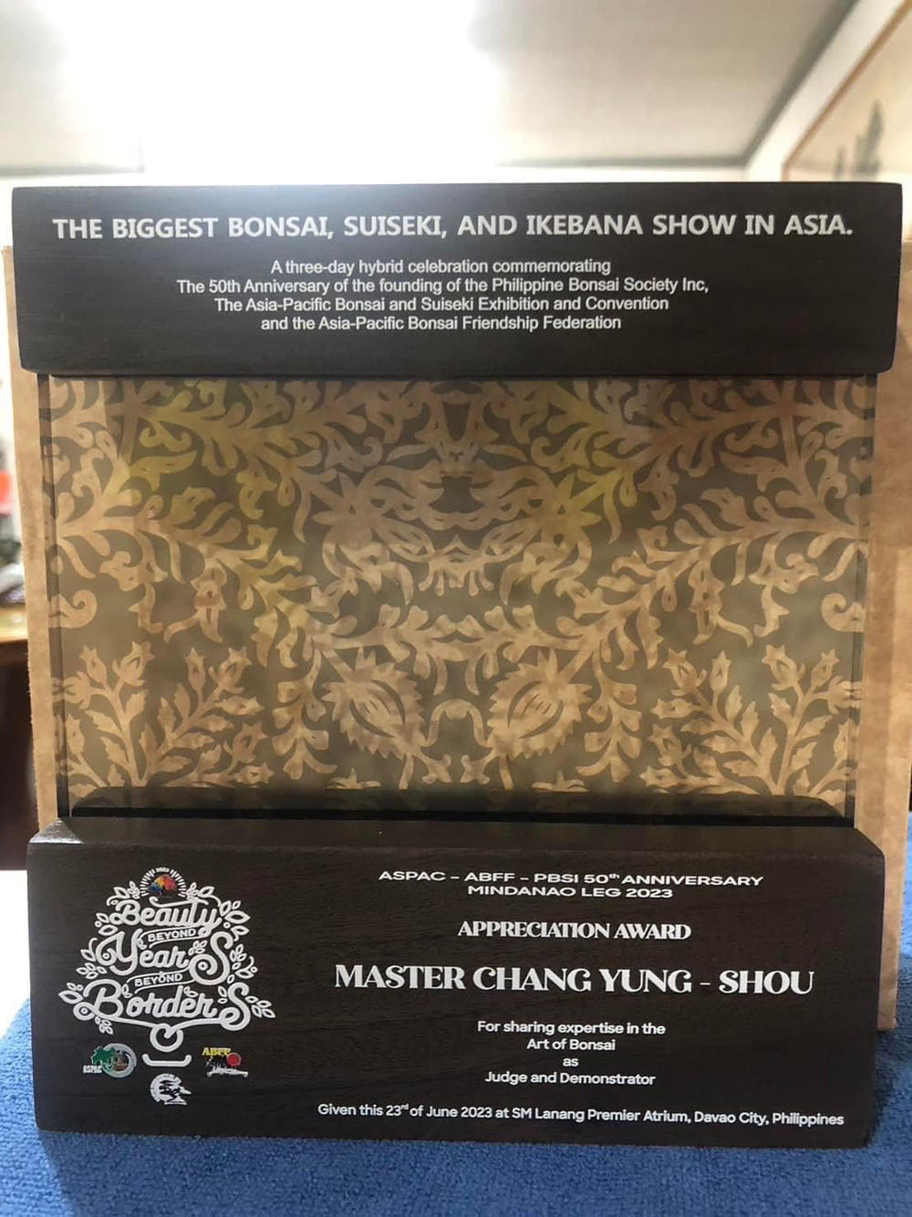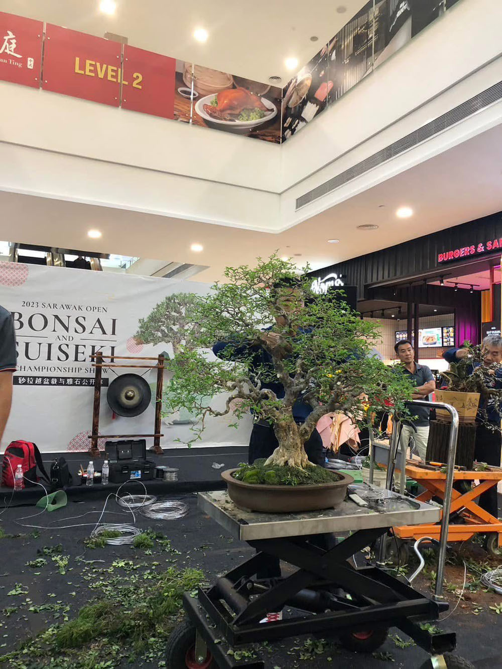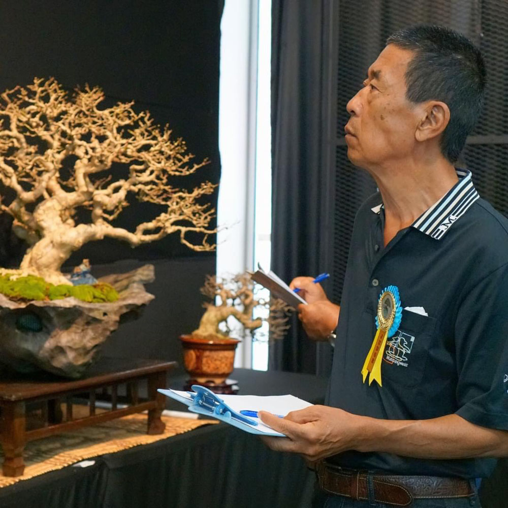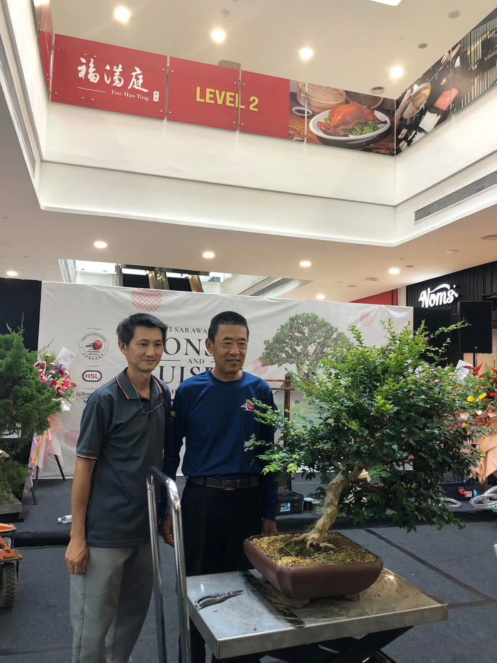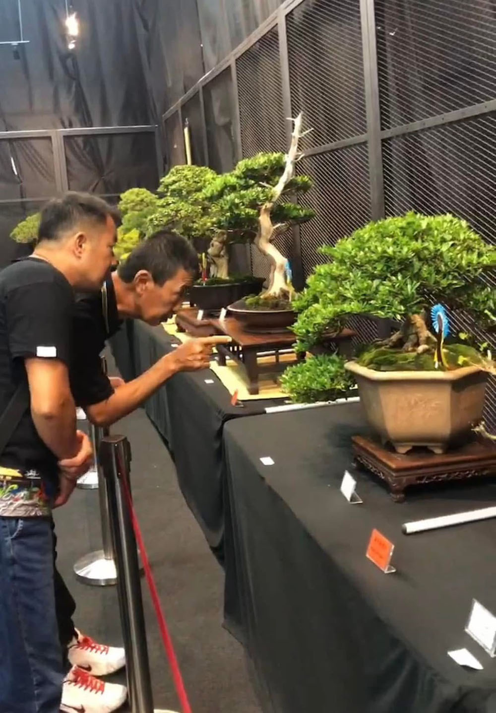2023年再次受邀至馬來西亞擔任盆栽展評審,並於現場進行整枝與絲雕實演,與來自各地的盆栽職人切磋技藝,深化國際交流。