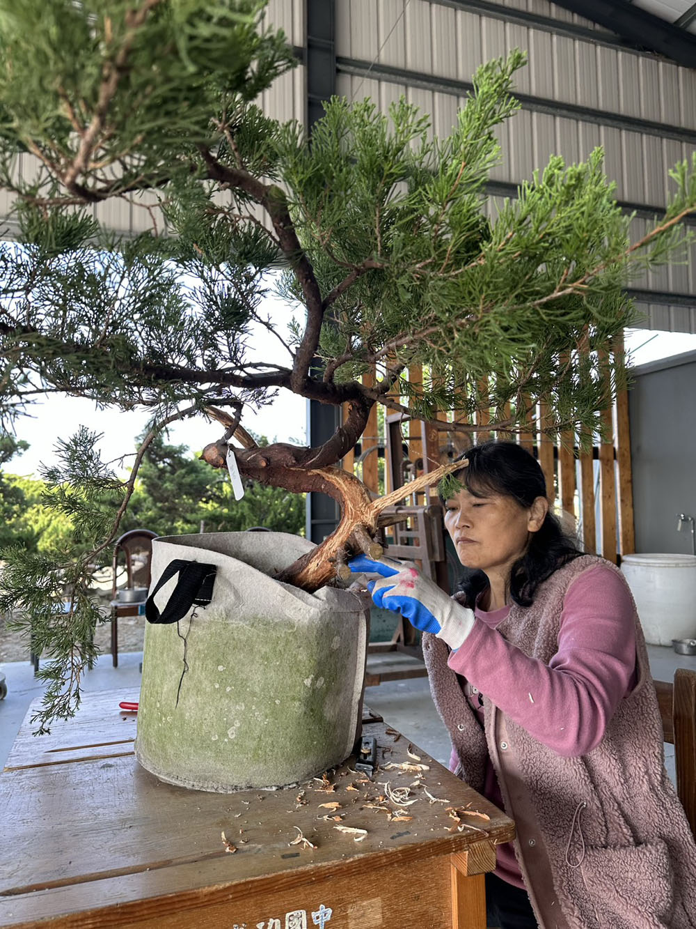 雲林真柏盆栽教室展開一場以「真柏盆景初階實作」為主題的課程,內容涵蓋樹型觀察、修枝技巧與基礎絲雕概念,並由專業講師進行現場示範與一對一指導。學員們在課堂中親手操作,從剪枝、定位、定線到整枝完成,每個步驟皆仔細講解,讓初學者也能快速掌握核心技法。過程中也安排經驗分享與問題討論,促進學員間的互動與交流。透過這次實作課程,不僅提升了學員對真柏的了解與興趣,也讓更多人親身體會盆景藝術的獨特魅力。